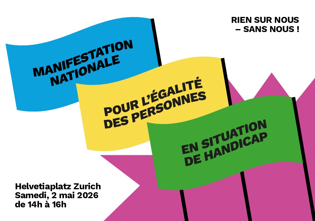 Le 2 mai 2026, une grande manifestation nationale pour l'égalité et l'inclusion des personnes en situation de handicap aura lieu au Helvetiaplatz à Zurich. Réservez la date et participez à cet événement pour l'égalité des droits et une véritable participation.